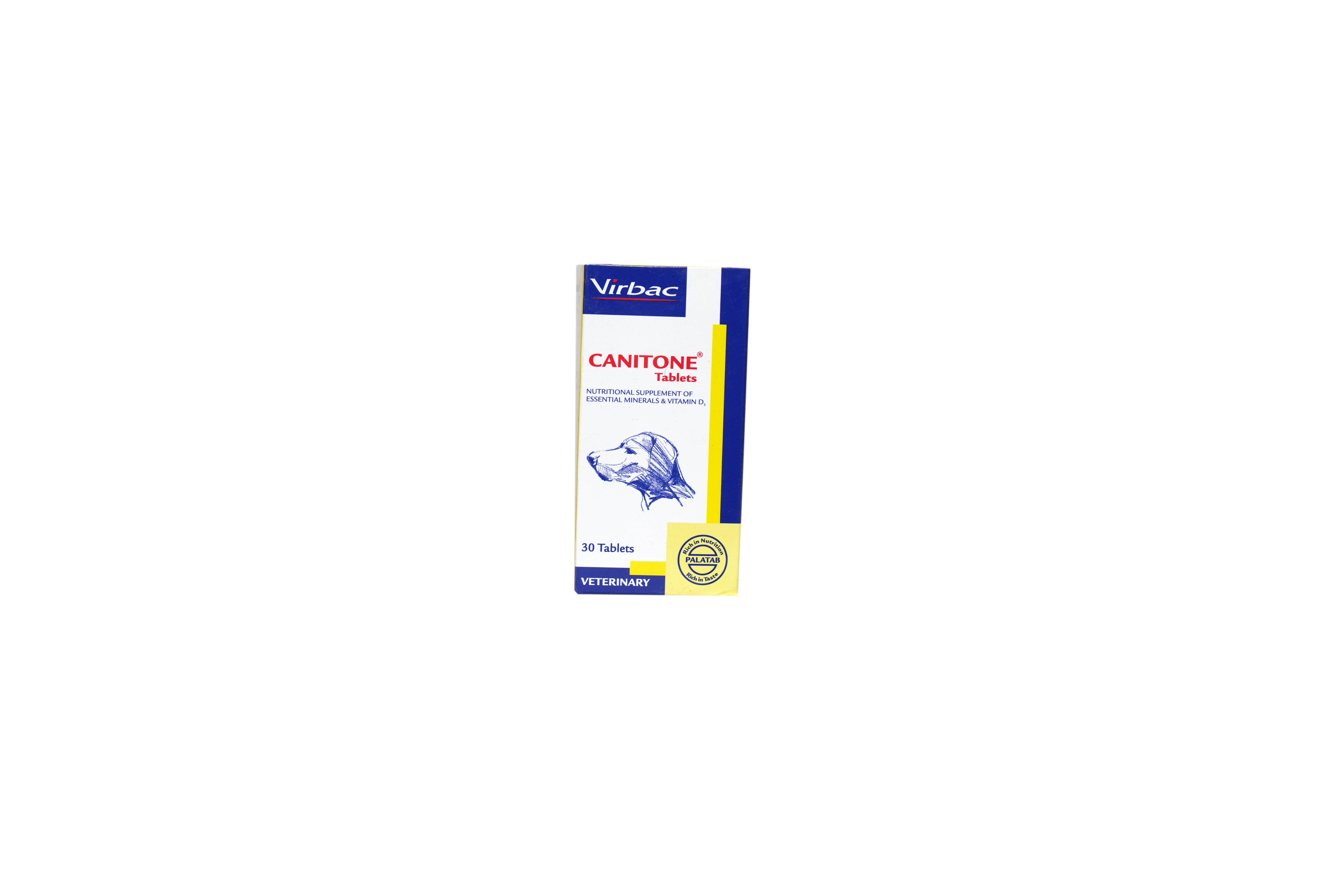 Virbac Canitone Tablets Calcium Supplement for Dogs and Cats (Pack of 30 tablets) Virbac Canitone Tables For Dogs is a complete and balanced vitamin-mineral supplement, essential for better absorption of Calcium in dogs with mineral deficiencies. Composition : Each tablet contains Calcium 700mg Phosphorus 400mg Magnesium 0.5mg Vitamin D3 400 IU Class : Calcium supplement Disclaimer This product is a nutritional supplement for pets and is not intended to diagnose, treat, cure, or prevent any disease. Use only under the guidance of a qualified veterinarian. Always follow the recommended dosage