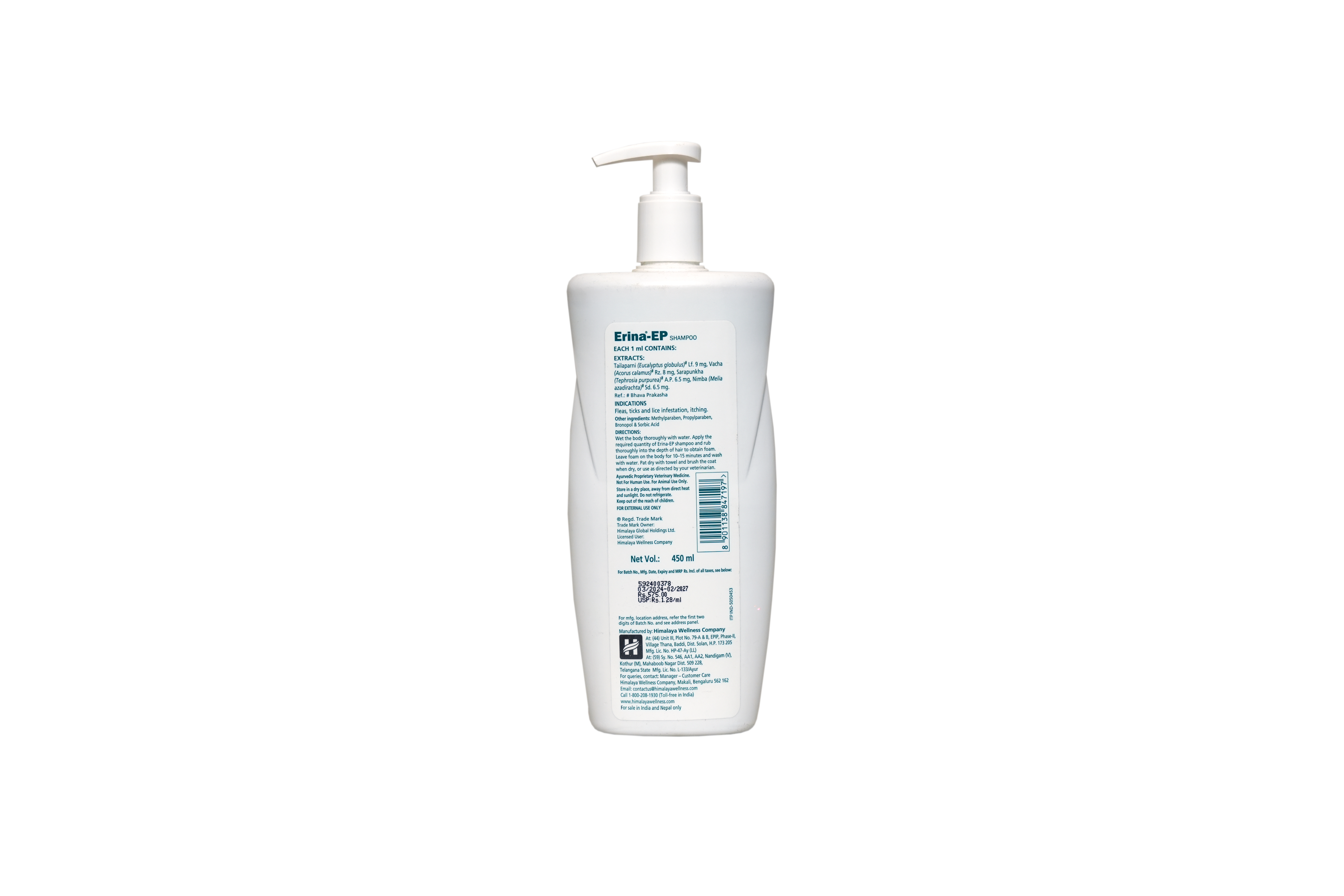 ERINA EP Tick & Flea Shampoo for Dogs & Cats (Lemon Fragrance) ERINA EP Tick & Flea Shampoo is a specially formulated ectoparasitic shampoo designed to help manage and control external parasites such as ticks, fleas, and lice in dogs and cats. Enriched with the natural goodness of Neem and Eucalyptus, it not only helps eliminate parasites but also supports healthy skin by preventing microbial and fungal skin infections. Its refreshing lemon fragrance helps control unpleasant body odor, leaving your pet clean, fresh, and well-groomed after every bath. Gentle on the skin yet effective, ERINA EP Shampoo is suitable for regular hygiene and parasite control. Key Features Effective Ectoparasite Control Helps manage ticks, fleas, and lice in dogs and cats. Antimicrobial & Antifungal Action Aids in preventing skin infections caused by bacteria and fungi. Controls Body Odor Keeps pets smelling fresh with a pleasant lemon fragrance. Protects Skin Health Helps prevent scaling and skin damage while maintaining coat hygiene. Herbal Formulation Infused with Neem and Eucalyptus to support skin health naturally. Suitable for Dogs & Cats Safe for use on both dogs and cats of all breeds. Key Ingredients Neem – Known for its antiparasitic and skin-protective properties Eucalyptus – Helps soothe skin and provides antimicrobial benefits Directions for Use Wet the pet’s coat thoroughly with water Apply adequate quantity of ERINA EP Shampoo Massage gently to create rich lather Leave on for a few minutes Rinse thoroughly with clean water Use as directed by a veterinarian. Disclaimer For external use only. Avoid contact with eyes, nose, and mouth. Keep out of reach of children. Consult a veterinarian for proper usage and frequency.