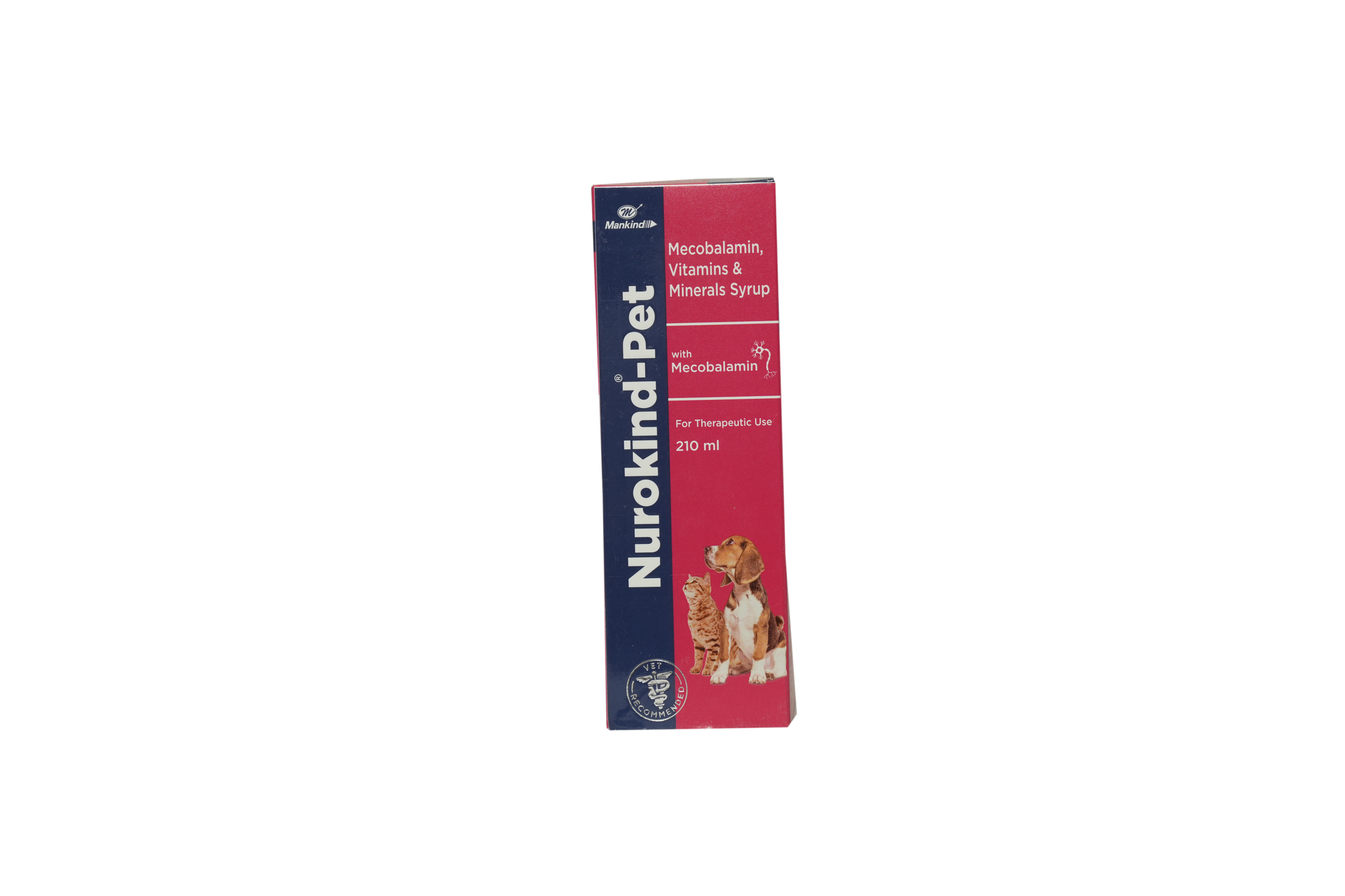 Mankind Nurokind Pet Syrup for Dogs & Cats – Multivitamin Supplement Mankind Nurokind Pet Syrup is a premium multivitamin supplement from Mankind Pharma, formulated to support overall health, immunity, and vitality in dogs and cats of all ages. Enriched with essential vitamins, minerals, amino acids, and trace elements, it helps maintain energy levels, improve skin & coat health, and promote complete well-being. Composition Mecobalamin, Vitamin B6, Niacinamide, Biotin, Zinc, Iron, Copper, Iodine, Manganese, Chromium, Selenium, L-Lysine Uses Provides complete nutritional support Boosts immunity and energy levels Improves skin and coat condition Supports overall growth and vitality Benefits Balanced multivitamin and mineral formula Helps reduce weakness and fatigue Promotes healthy skin and shiny coat Easy-to-administer palatable syrup Key Features Suitable for dogs and cats Veterinarian approved formulation Highly palatable liquid form Pack Size: 210 ml Dosage (or as directed by veterinarian) Pets up to 10 kg: 2.5 ml daily Dogs 10–20 kg: 5 ml daily Dogs above 20 kg: 7.5 ml daily Puppies/Kittens: Vet consultation advised Disclaimer This information is for educational purposes only and not a substitute for veterinary advice. Always consult a qualified veterinarian before use. Avetmart supports, but does not replace, the veterinarian–pet relationship.