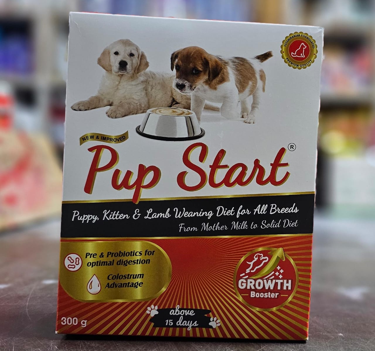 Benefits From Mother Milk to Solid Food. A Complete Food for Young Growing Puppies & Kittens. Formulated for healthy growth and development with high quality protein. Tastes delicious and offers superior digestibility. Improves weight gain. Keeps the pups immune system balanced and help to flight against microbial infections, and contribute to overall health. Dosage No. of Days Weight Quantity Per Serving PupStart® Quantity Per Serving Water (Luke Warm) Feeds Per Day 15 to 30 Days 1 - 2 Kg 2 - 4 Kg 4 - 8 Kg 10g 15g 20g 30ml 45ml 60ml 4 - 5 Times 31 to 40 Days 1 - 2 Kg 2 - 4 Kg 4 - 8 Kg 20g 30g 40g 60ml 90ml 120ml 3 - 4 Times Above 40 Days 1 - 2 Kg 2 - 4 Kg 4 - 8 Kg 40g 60g 80g 120ml 180ml 240ml 2 - 3 Times